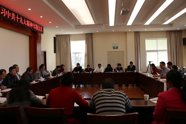 10月31日,民建玉溪市委在玉溪市民主党派大楼五楼会议室召开四届三次全委(扩大)会议,专题传达学习中共十九大报告精神。民建玉溪市委专职副主委杨敏、副主委高巨华,市委常委、市委委员以及各基层支部主委、副主委30余人参加了会议,会议由杨敏主持。