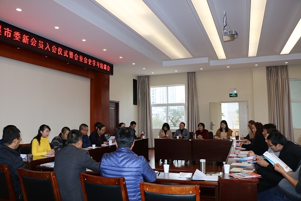 2017年12月12日下午,民建玉溪市委在玉溪市民主党派五楼会议室举行2017年新会员入会仪式暨会章、会史学习培训会。民建玉溪市委主委、玉溪市商务局副局长自福庄,民建玉溪市委专职副主委杨敏,民建玉溪市委常委、委员,各支部主委,2017年入会会员共30余人参加了培训会。