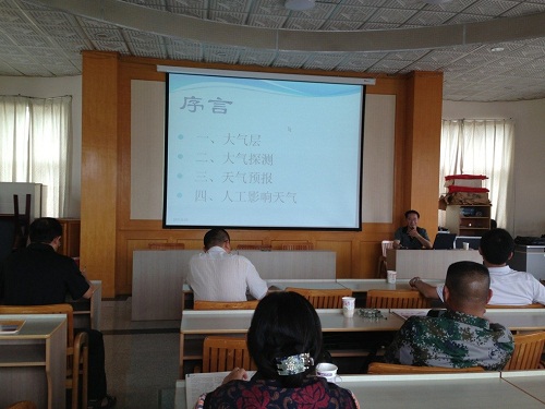 讲座用图文并茂、简单明了的PPT演示,讲解了大气层、大气探测、天气预报、人工影响天气四个方面的内容。随着社会的发展,今天人类活动正有意或无意地改变着大气的组成和大气层的结构,特别是温室气体含量的不断升高,臭氧层空洞的出现。地球经过几亿年形成的适宜复杂生命生存的大气层,正经历人类时代的巨大改变,如果人类还不警醒,可能导致智慧生物(人类自己)的灭绝。通过对蝴蝶效应的解释,使大家明白了长时期大范围天气预报往往因一点点微小的因素造成难以预测的严重后果,并联系实际介绍了人工降雨和人工防雹。