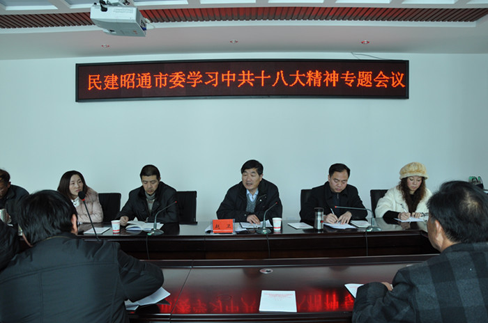 12月24日,民建昭通市委召开学习中共十八大精神专题会议。民建市委委员、各支部主任、机关干部参加了会议。会议由民建市委副主委、镇雄县副县长胡建普主持。会上,市人大常委会副主任、民建市委赵卫传达了民建中央十大会议精神,并对下步工作进行了安排布置。郎焱培副主委传达了中共十八大会议精神。随后,市委领导班子成员及各支部负责人就学习贯彻中共十八大精神进行了交流发言。