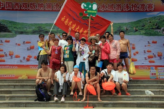 4月9日,云南傣族传统节日“泼水节”期间,西双版纳澜沧江国际公开水域游泳抢渡赛在景洪揭开帷幕,来自国内外总计50支代表队的500多运动员参加了比赛。云南民建大自然游泳队组成了一支由民建直属文体支部部分会员及民建大自然冬泳队员20名运动员及8名后勤保障人员的参赛队伍,在支部主委、队长李润及支委的带领下参加了比赛。本次活动得到民建企业家田坤、梁子宇、马晓燕等会员从经费上的大力支持。