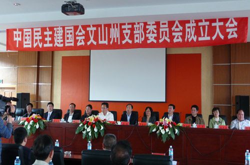 2010年2月5日,在州政协礼堂,民建文山州支部召开了隆重的成立大会。中共文山州委、州政府、州人大、州政协的领导、部分州级机关领导、会员单位领导、文山州兄弟党派领导、民建部分地方组织领导和全体会员参加了成立大会。