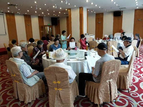 活动在老会员们激情澎湃的歌声中开始,从六十五岁到九十岁的四十多名民建老会员都热情高昂,大家畅所欲言,围绕老年支部工作经验及存在困难进行了交流发言,把爱党爱国爱会的传统薪火相传下去。