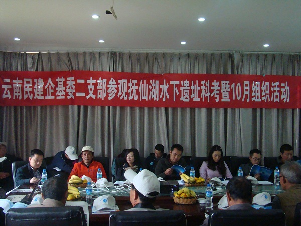 10月12日下午,企基委二支部在澄江县抚仙湖畔开展了由《云南经济日报·三迤瞭望周刊》、云南中华文明研究会联合支持,主题为“参观体验神秘的抚仙湖水下遗址科考” 的 10月组织生活会。企基委二支部会员及其他支部主委、副主委、部分会员,云南中华文明研究会抚仙湖水下遗址科考组的专家学者参加会议。