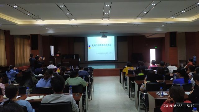 祝英杰主任以“常见妇科肿瘤的诊治进展”为主题,对全县妇产科医务人员进行了培训,详细讲解了宫颈癌FIGO2018分期及处理、宫颈癌的特点及筛查。对卵巢癌的组织学分类、卵巢上皮性癌、卵巢生殖细胞肿瘤、卵巢性索间质肿瘤的特点进行了仔细讲解。对子宫内膜癌特点、术后补充治疗等进行了规范化培训。